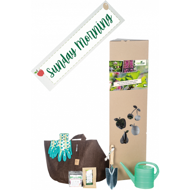 Mit dem Paket "Sunday Morning" ist der Empfänger mit allem modernen Komfort ausgestattet. Neben einem pflegeleichten Apfelbaum enthält die Verpackung auch verschiedene Pflegeprodukte. Das macht das Pflanzen und Pflegen des MiniTree zum Kinderspiel und ermöglicht es Ihnen, die schöne Blüte im Frühjahr und die köstlichen Äpfel im Herbst zu genießen!
