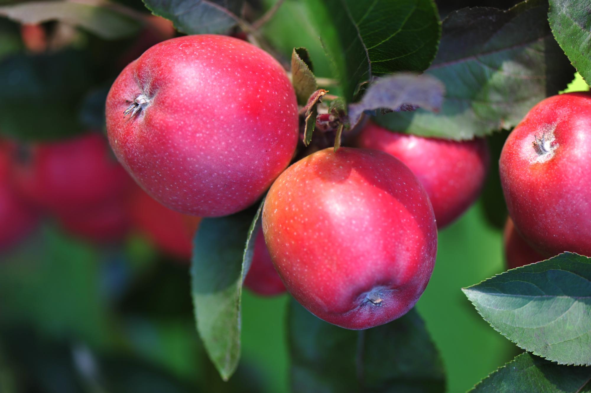 • Redlane, Rosafarbene Blüte, leicht säuerlich, kleine rote Äpfel