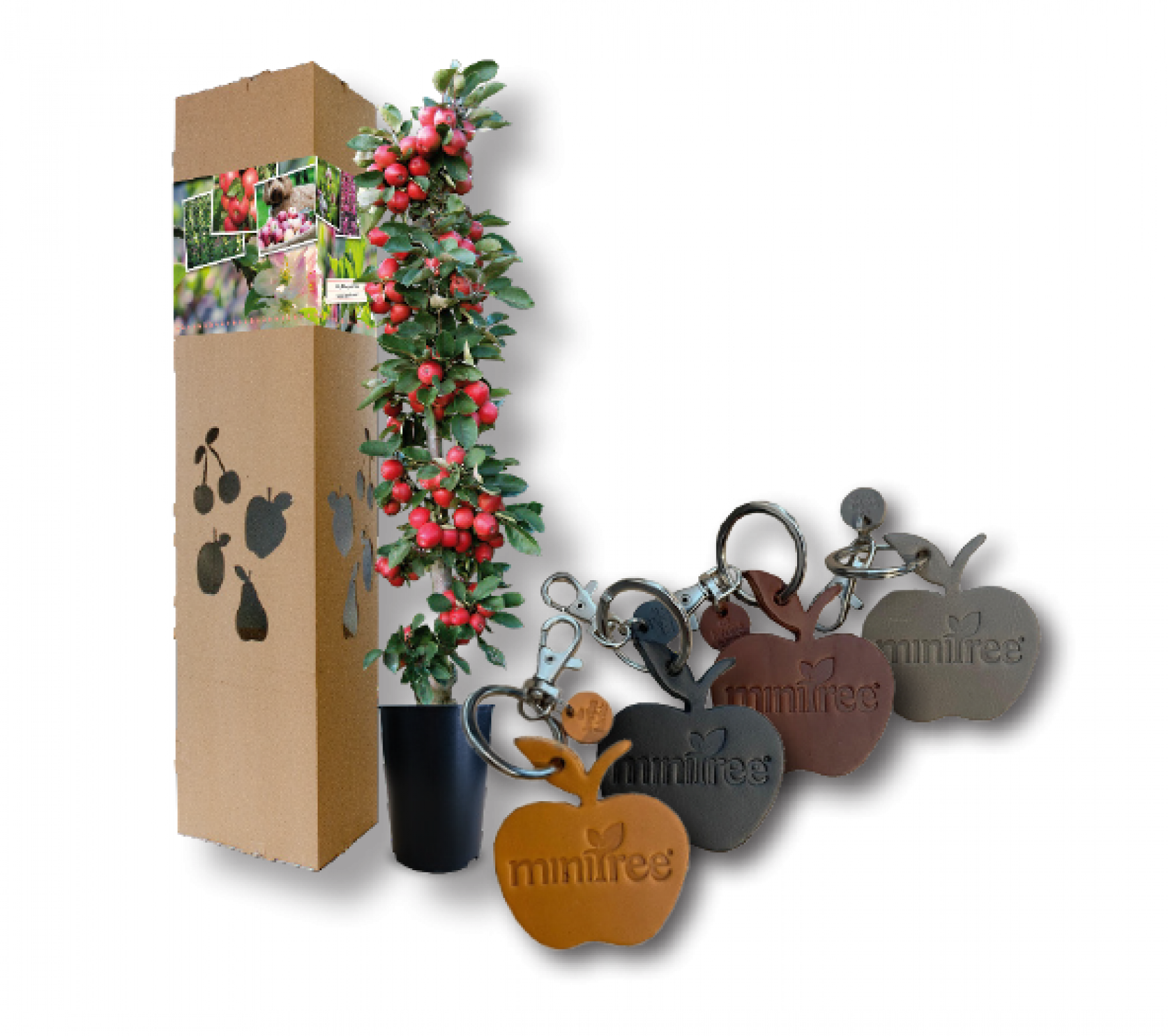 Schenken Sie Ihrer lieben Mutter einen MiniTree Apfelbaum. Der Apfelbaum wird jedes Jahr blühen und dann Früchte tragen. Bei der Bestellung dieses Baumes erhalten Sie einen ledernen "Apfel"-Schlüsselanhänger als Geschenk von uns. In der Beschreibung sehen Sie, aus welchen Sorten Sie wählen können.