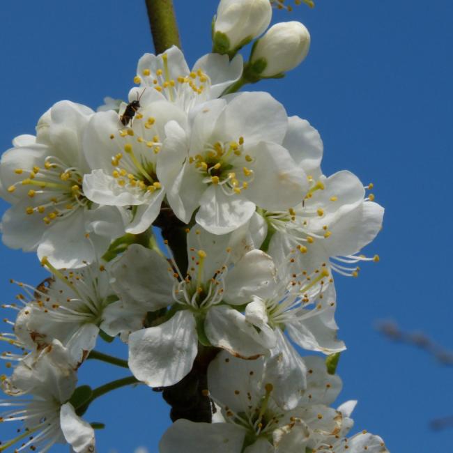 • Bloei: half april, witte bloesem
