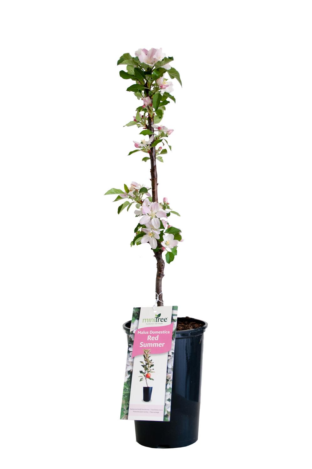 MiniTree Red Summer ist ein kleiner Apfelbaum, der sich hervorragend für den Einsatz im Garten oder auf dem Balkon eignet. Mit Red Summer kannst du im Frühjahr schöne zartrosa Blüten und im Herbst saftige, süße und sogar rote Äpfel (ähnlich dem Kanzi) genießen. Die Pflege dieses Apfelbaums ist minimal und das Beschneiden und Besprühen gegen Krankheiten ist nicht erforderlich.