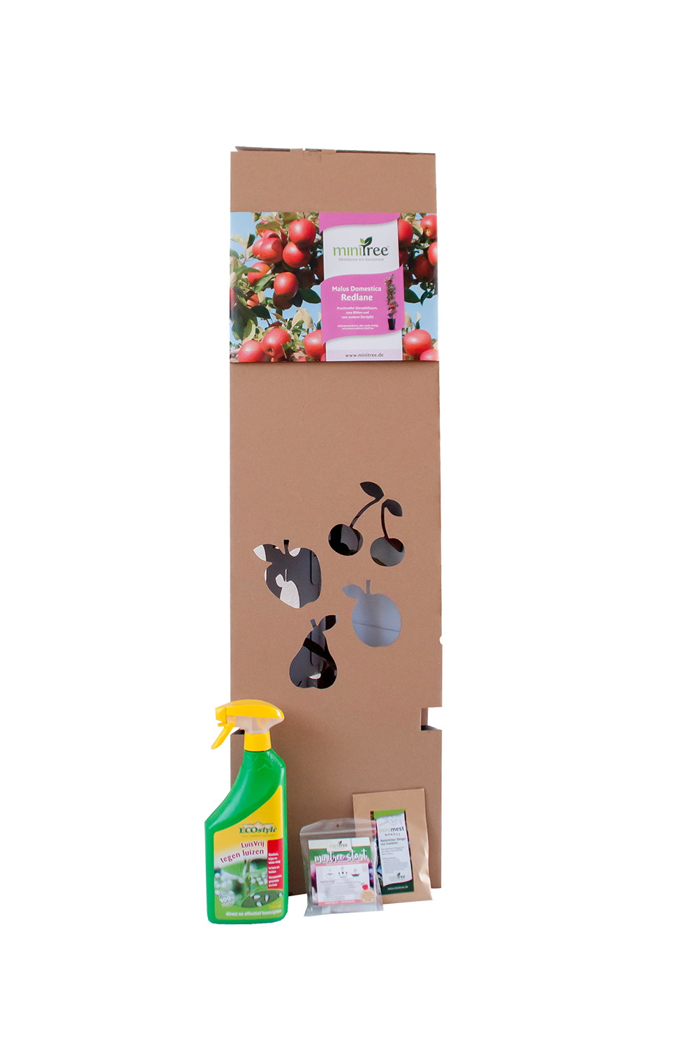 Mit diesem Paket geben Sie Ihrem MiniTree sofort die notwendige Bodenbiologie und Düngung bei der Inbetriebnahme und das Wachstum im ersten Jahr. Die Düngemittel in den Beuteln sind natürlichen Ursprungs. Legen Sie vor dem Pflanzen den MiniTree Startbeutel (biologisch abbaubar) in das gegrabene Pflanzloch und legen Sie Ihren Minibaum darauf. Düngen Sie den MiniTree im April und Juli mit natürlichem Dünger von Insekten um das Wachstum der Äpfel zu fördern. Der MiniTree ist im Frühjahr, wenn die jungen Blätter wachsen (normalerweise im Mai), empfindlich gegenüber Blattläusen. Mit dieser Flasche können Sie dies am Abend nach Sonnenuntergang einfach und natürlich bekämpfen.