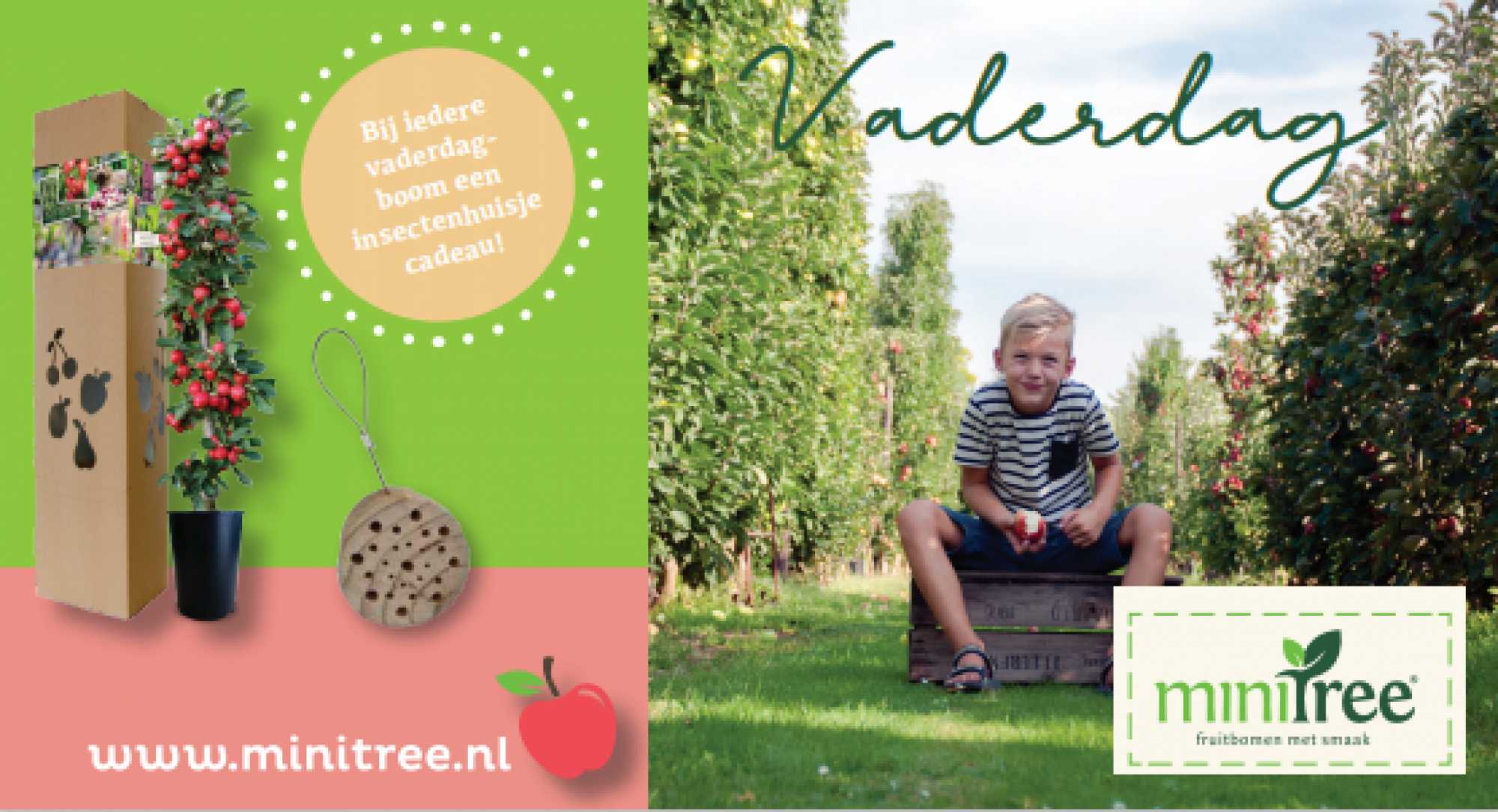 Schenken Sie Ihrem Vater am 18. Juni einen MiniTree-Apfelbaum. Der Apfelbaum wird jährlich blühen und dann Früchte tragen. Wenn Sie diesen Baum bestellen, erhalten Sie von uns ein "Insektenhaus" als Geschenk. Aus welchen Sorten Sie wählen können, sehen Sie in der Beschreibung. Wenn Sie den Baum einige Tage vor der Übergabe erhalten, vergewissern Sie sich, dass er einen trockenen Platz hat (Garage, Schuppen oder Vordach) und sehen Sie nach, ob er gegossen werden muss.