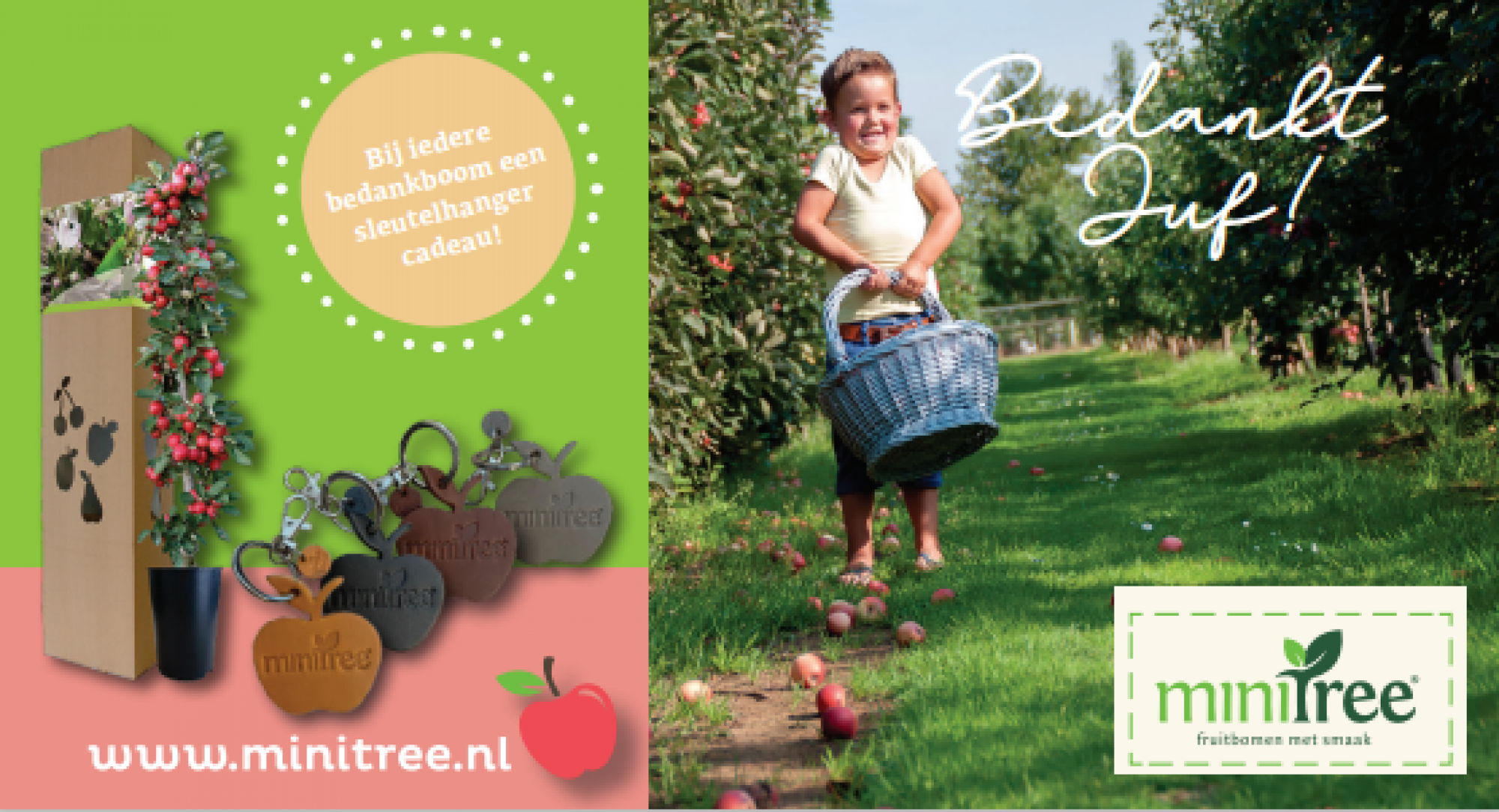 • MiniTree Goldlane: frische, saftige, leicht säuerliche grün-gelbe Handäpfel, weiß/rosa Blüte.